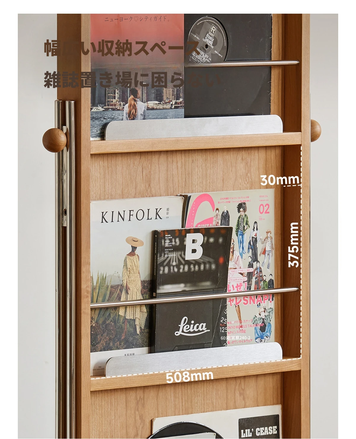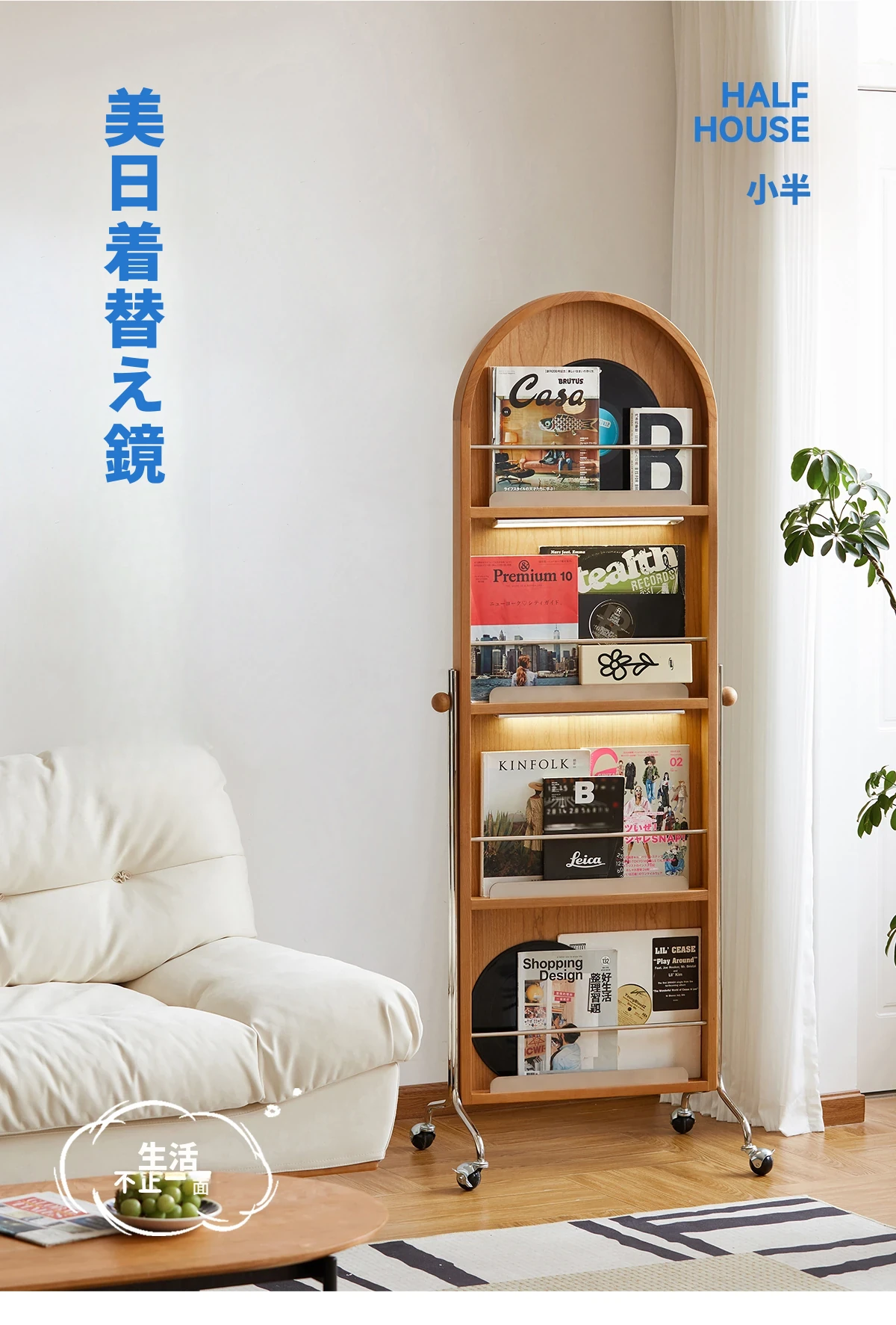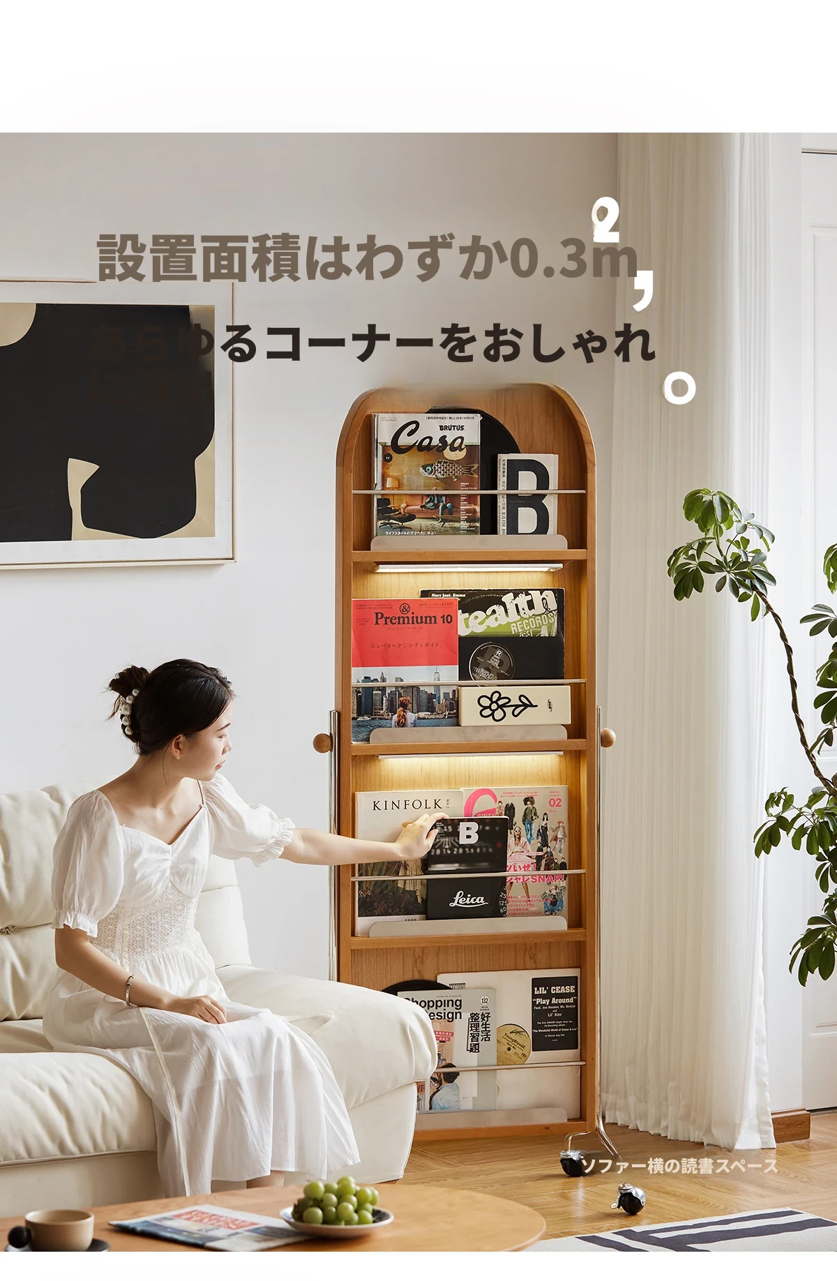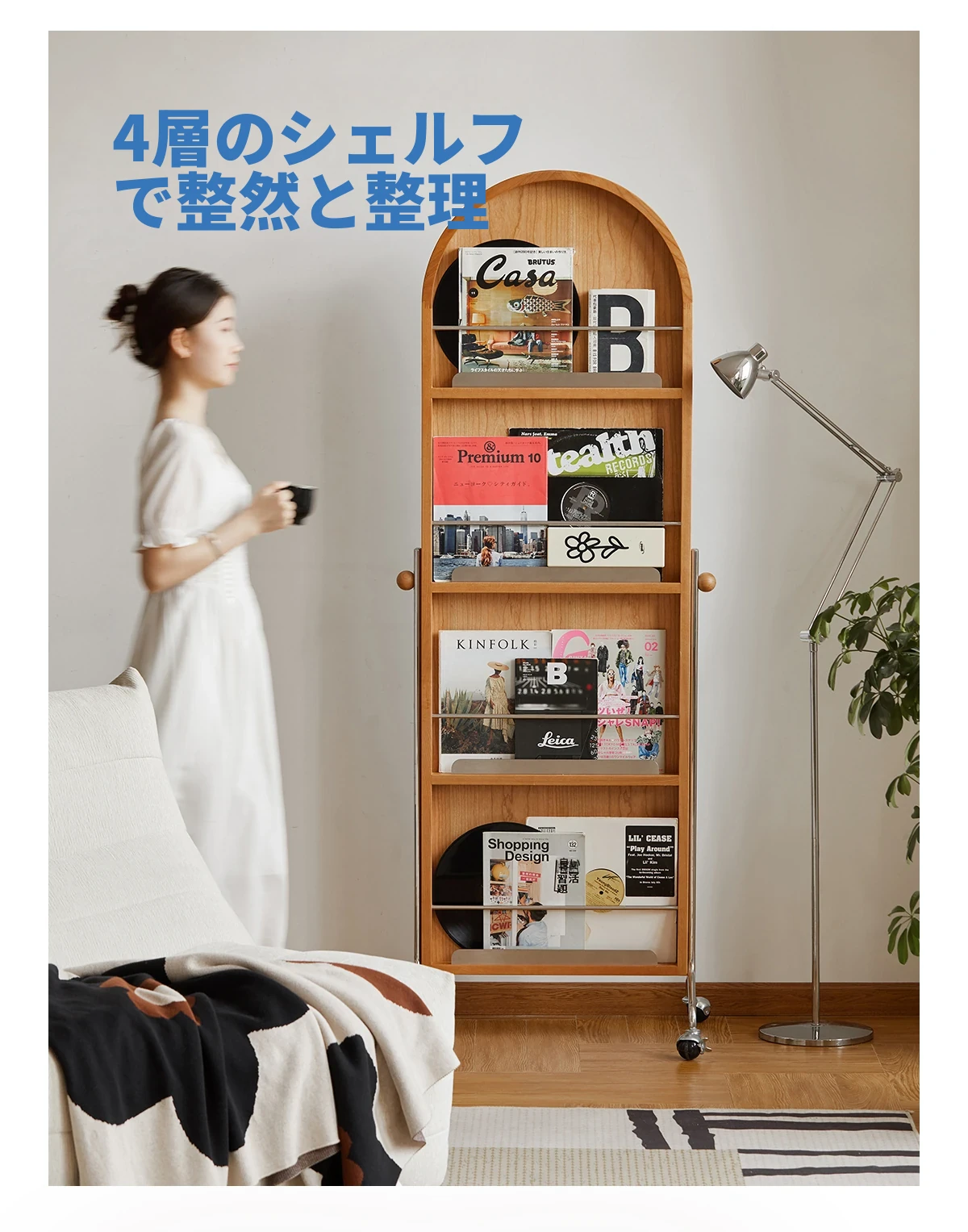 【魅力たっぷり】小半木材使用の移動式収納キャビネット&マガジンラック家具