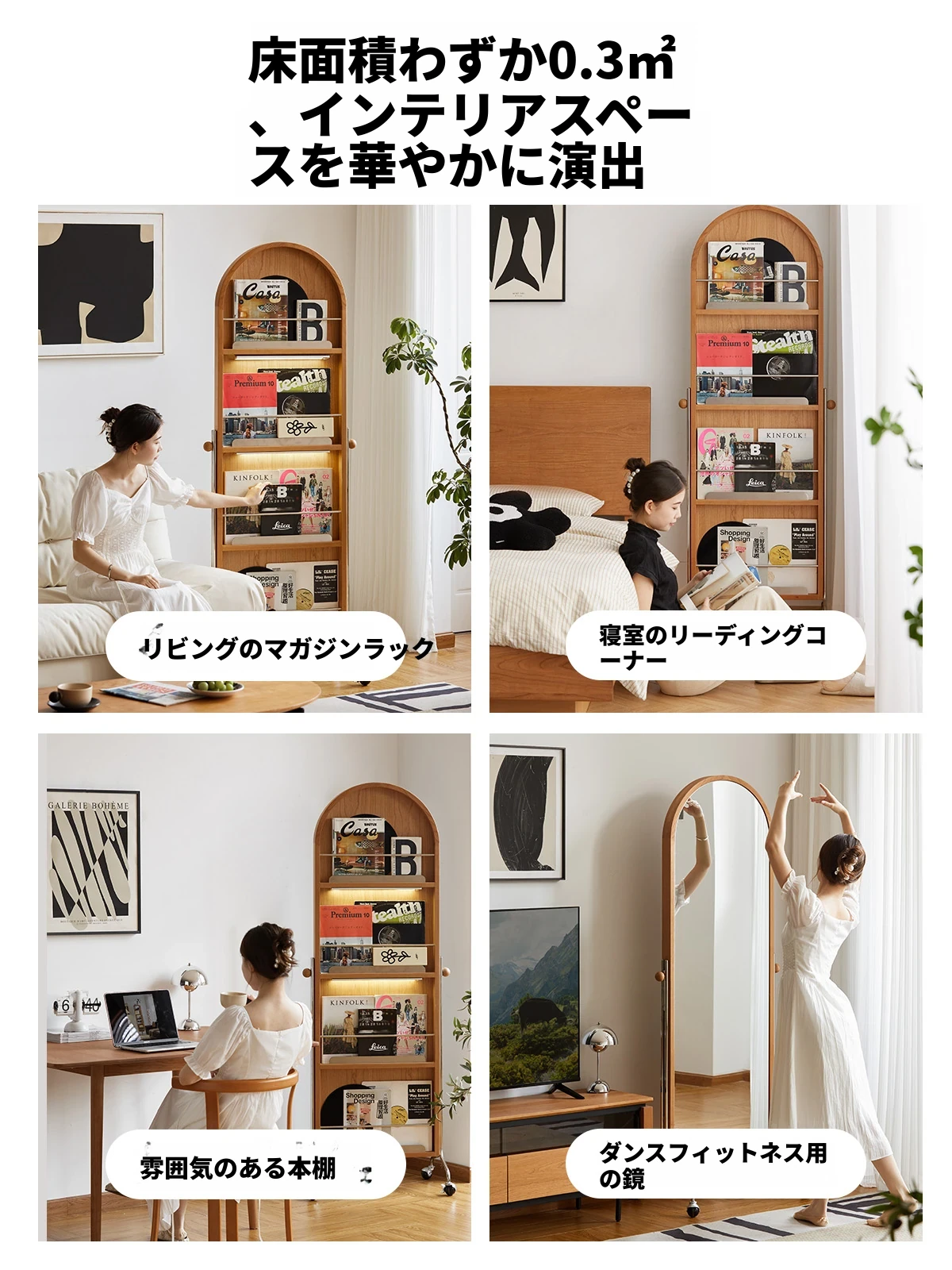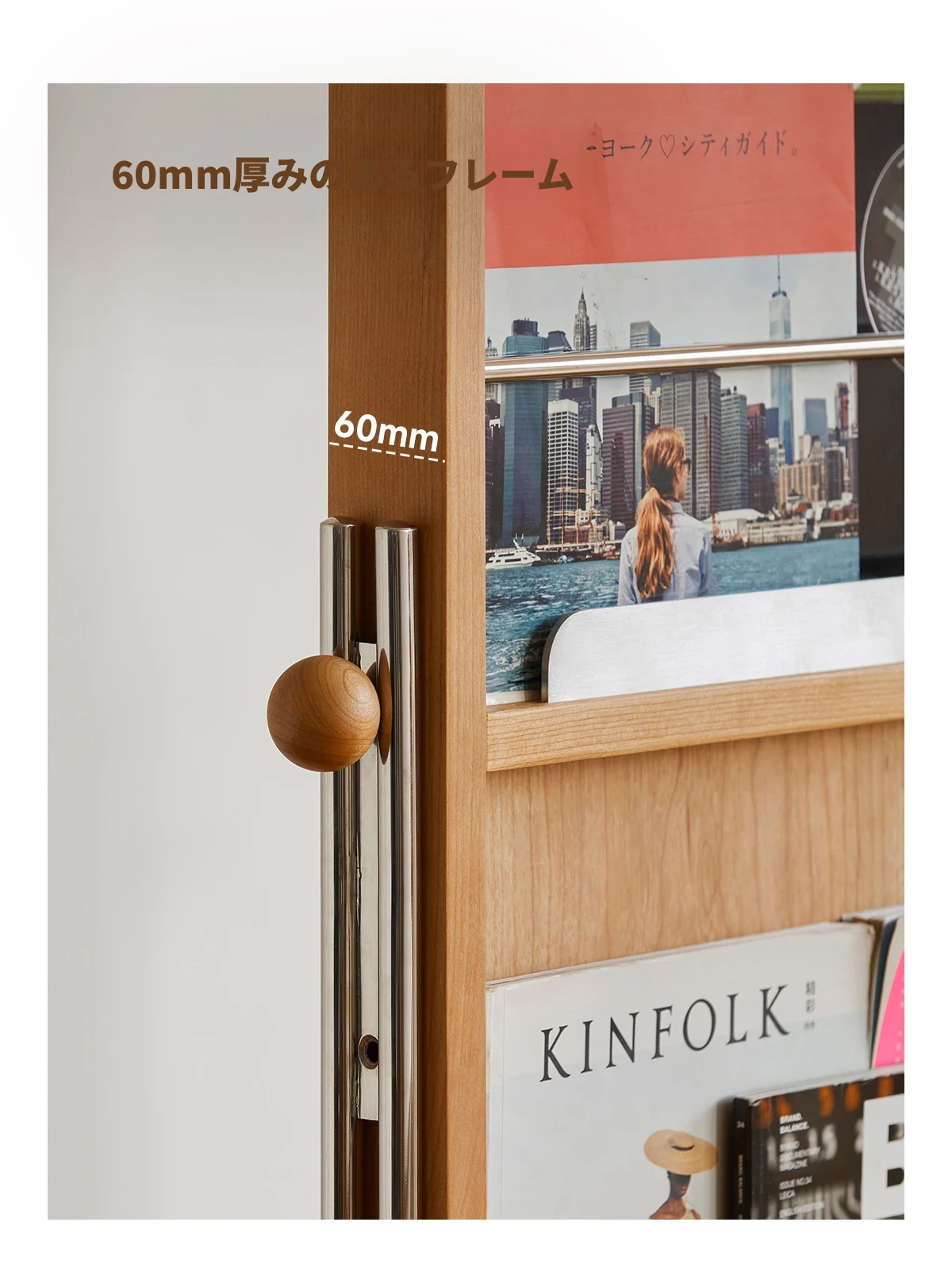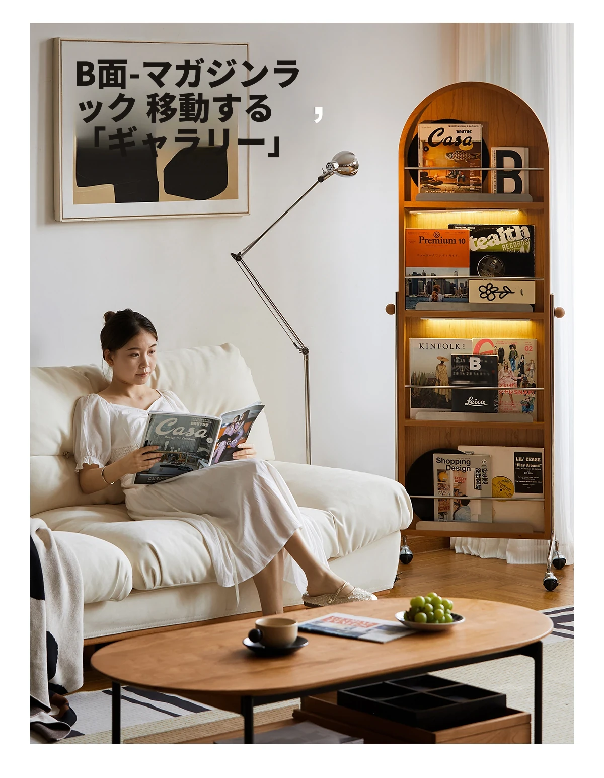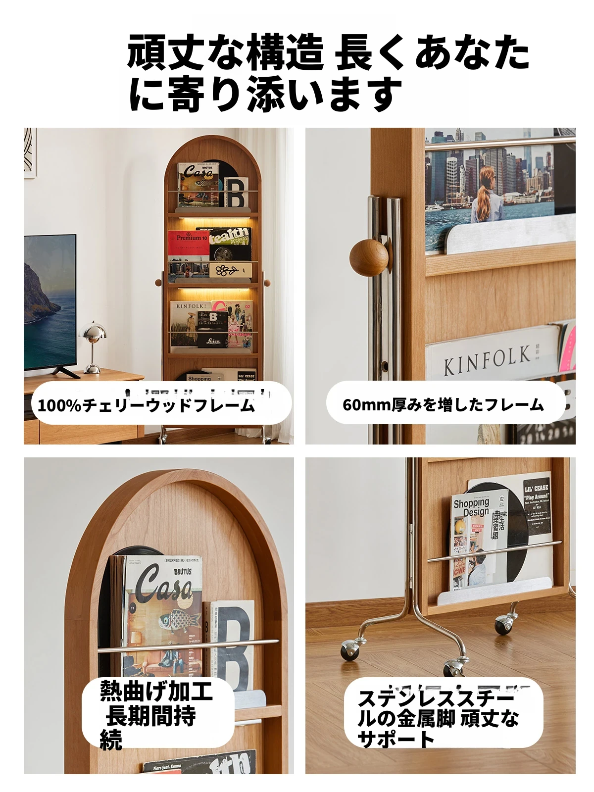 【魅力たっぷり】小半木材使用の移動式収納キャビネット&マガジンラック家具