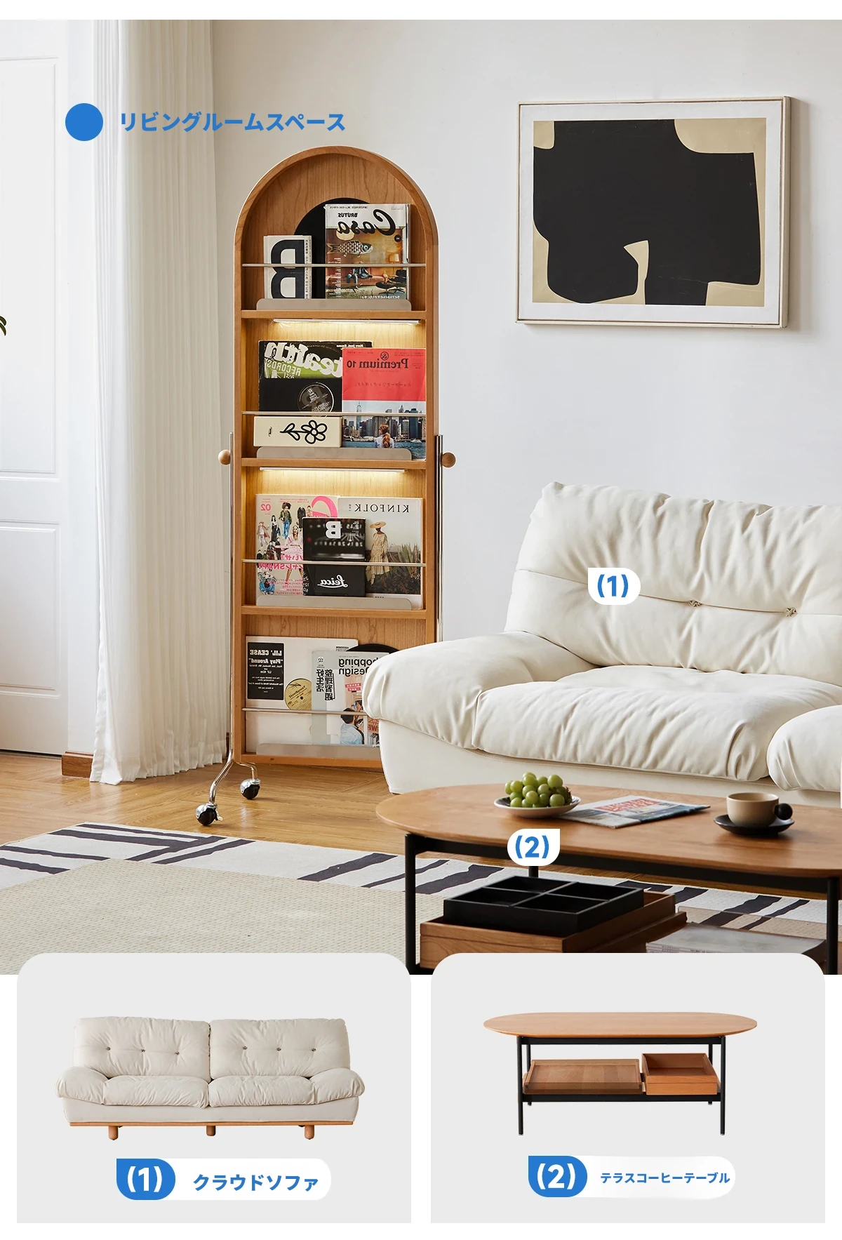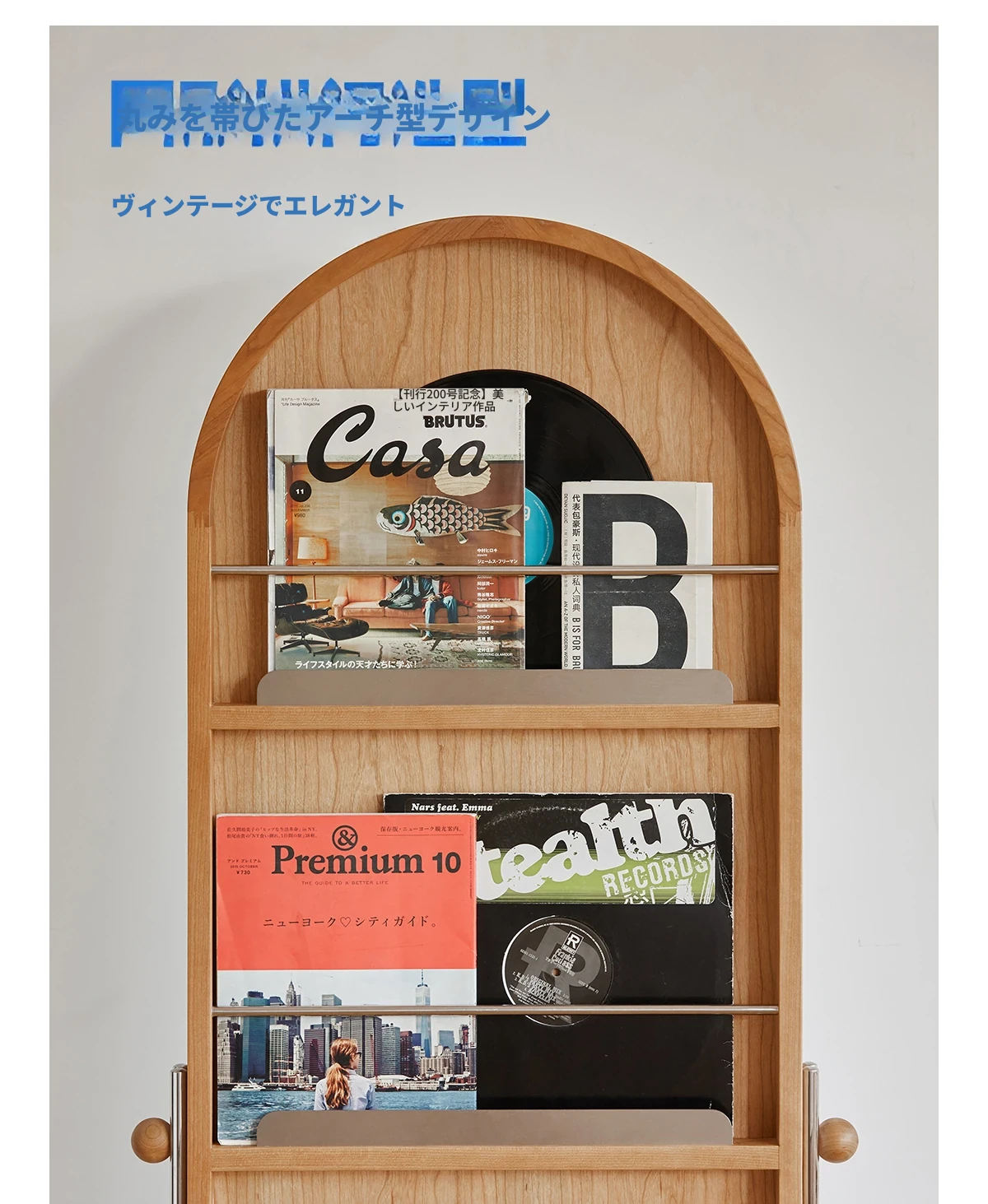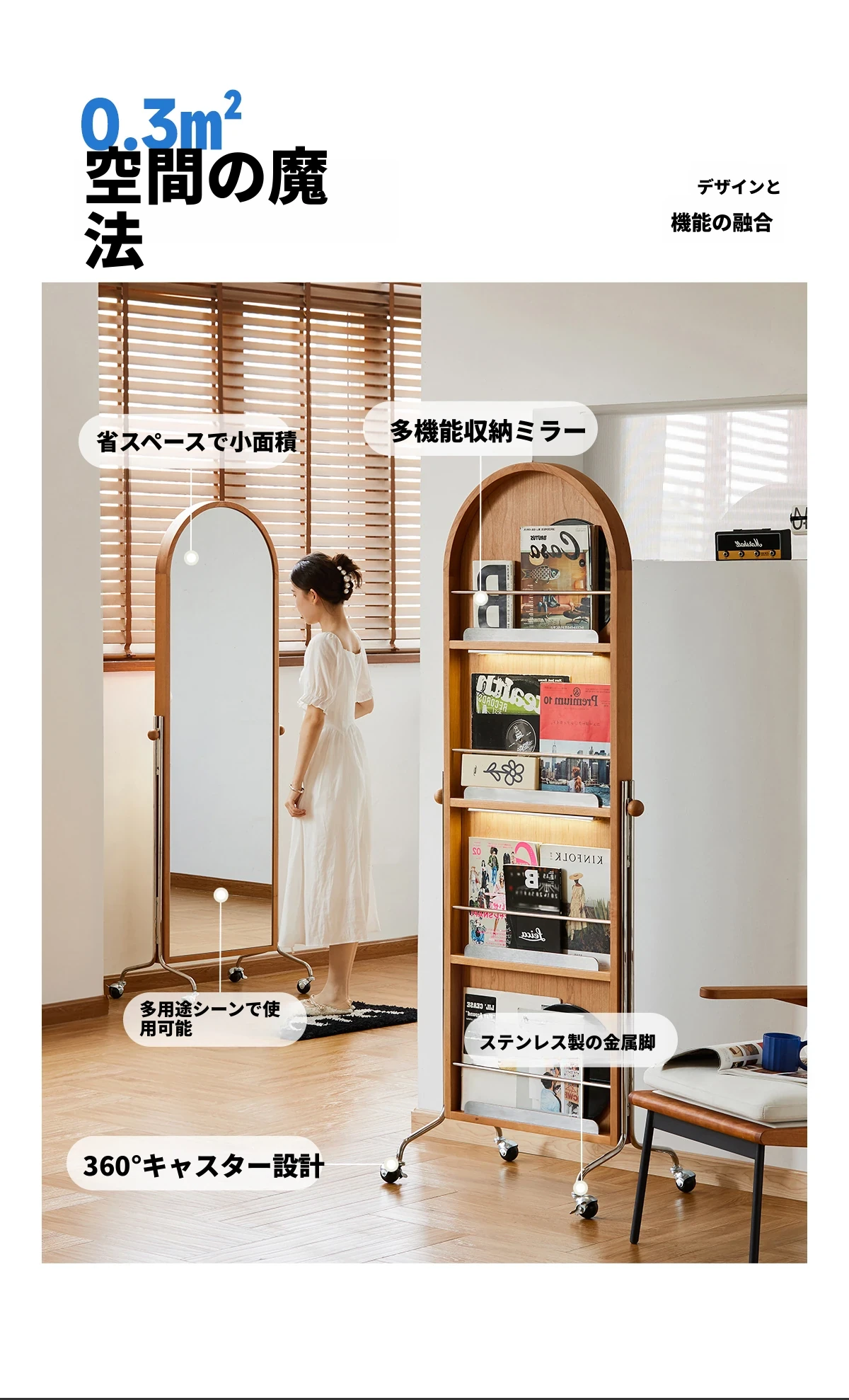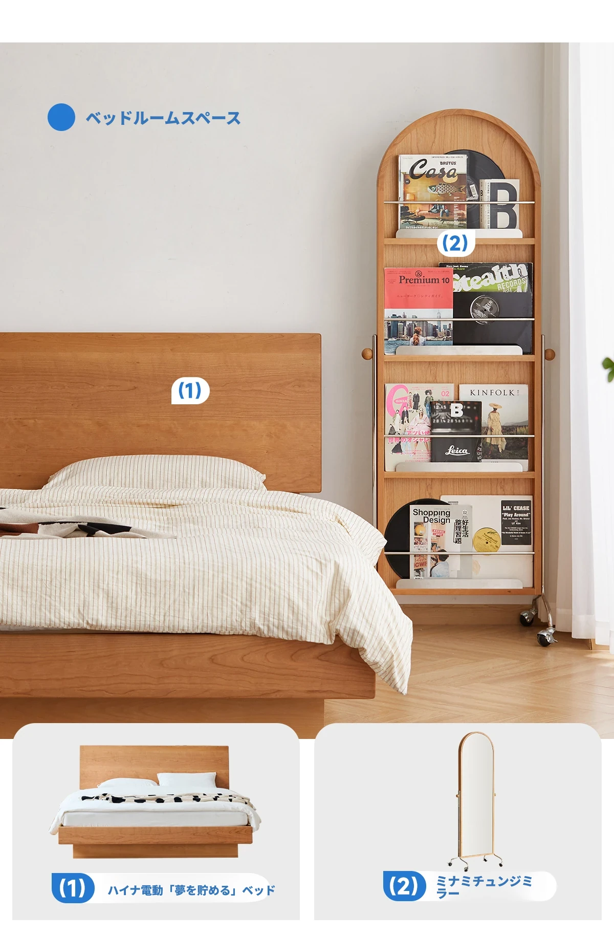 【魅力たっぷり】小半木材使用の移動式収納キャビネット&マガジンラック家具